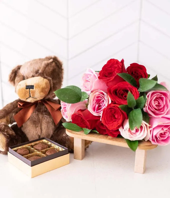 3. Rose and Lily Celebration Bouquet: A same day flower bouquet created by a local florist partner with pink and purple flowers, ideal for her.