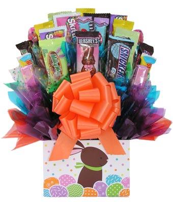 Send a unique bouquet with one of our Bouquets of Candy! These candy bouquets are created with candy bars to look like flower bouquets. The most popular candy bouquets for delivery is the Reese's Candy Bouquet that features a Reese's candy bar vase and a decorative bow. Other candy bouquets delivered include a Snicker's Candy Bouquet, Birthday Candy Bouquet and Valentine's Day candy bouquet. When you want to send a bouquet but want it to be unique, these candy bouquets for next day delivery are a perfect choice.