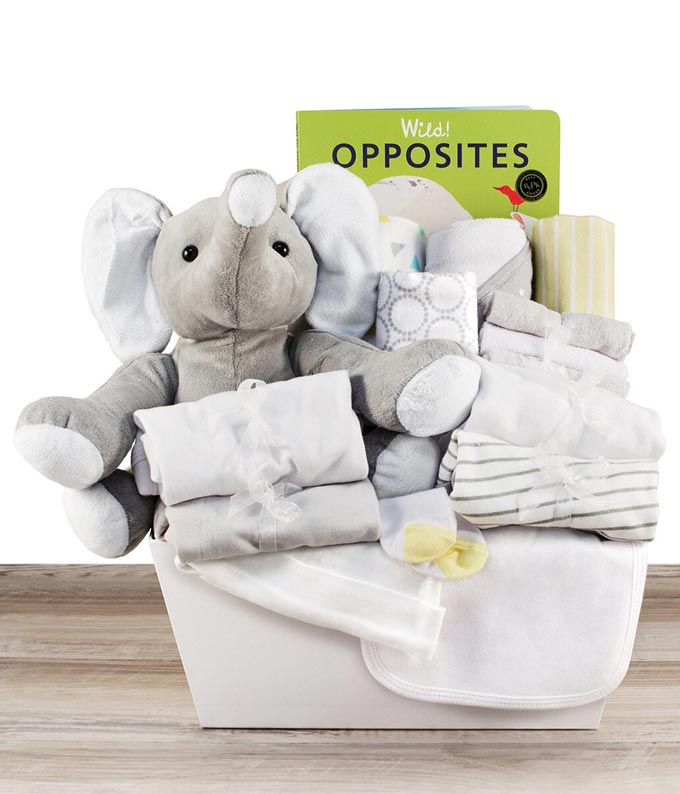 Welcome a newborn into the world or celebrate their first year around the sun with our new baby gift baskets. Each of our newborn baby gift baskets are crafted with unique items including cuddly stuffed animals, bath time essentials, cozy clothing, and more that are sure to entertain and bring comfort to your little one. Our baby gift baskets for boys and girls make show stopping gifts perfect for gender reveal parties, and baby shower or birthday celebrations. Or as a surprise, let us deliver gift baskets for the baby straight to their door to greet new parents as they arrive home from the hospital. Whether you are looking for traditional blue and pink color theming, or to capture their imagination with fairytales and safaris, each of our gift baskets is designed to bring comfort and ease to both baby and parent. Celebrate from near or far with gift baskets for baby boys and girls delivered with care to your loved one’s filled with special items they will cherish for years to come. From practical basics to adorable toys and accessories all designed in keepsake baskets, we want to help you create lasting memories and precious moments with the new baby and those that you love.