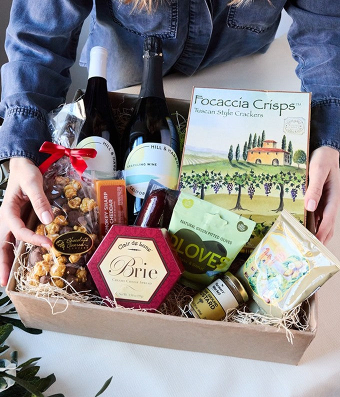 Deluxe Meat & Cheese Gift Box with California Red & White Wine